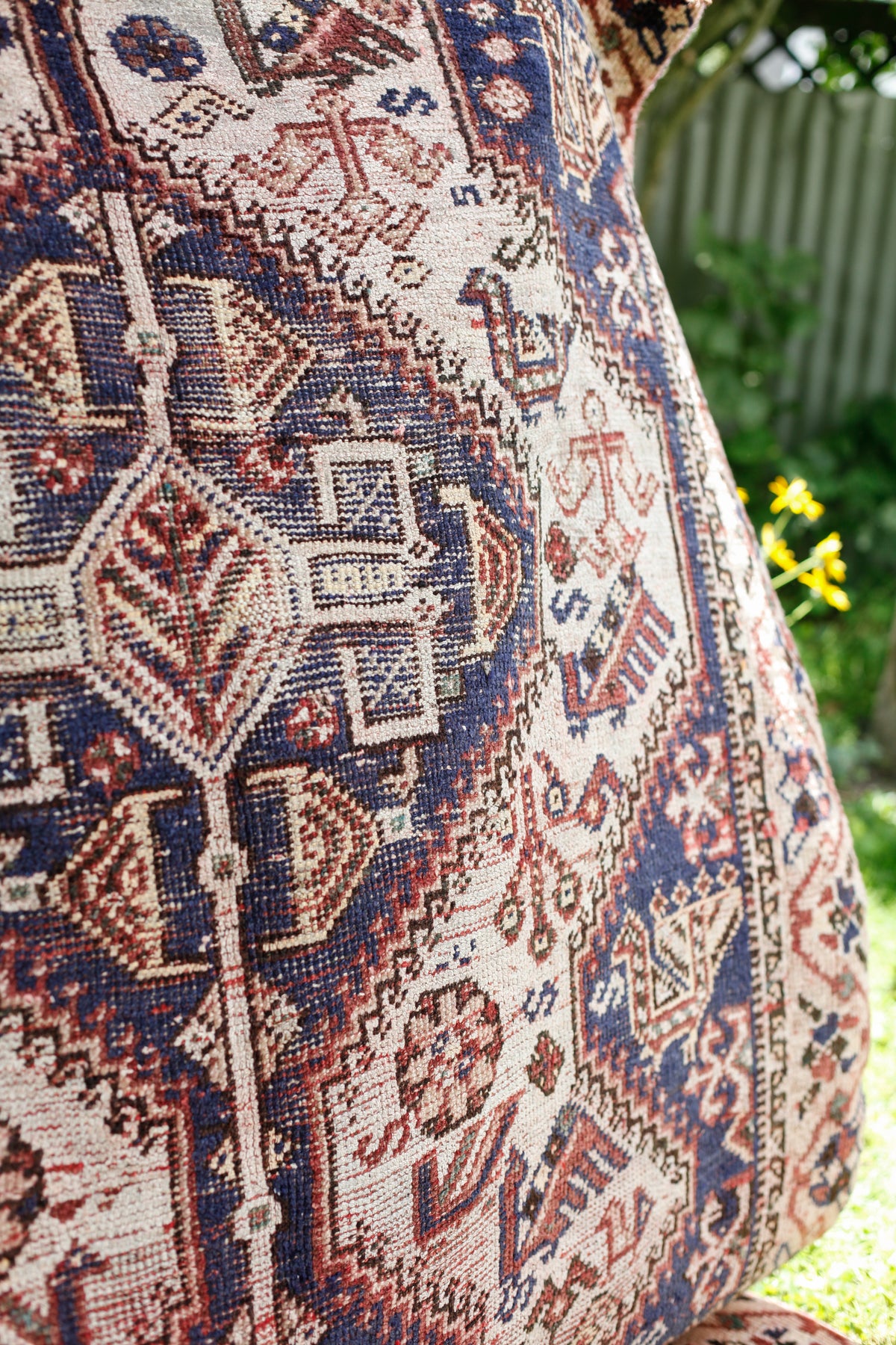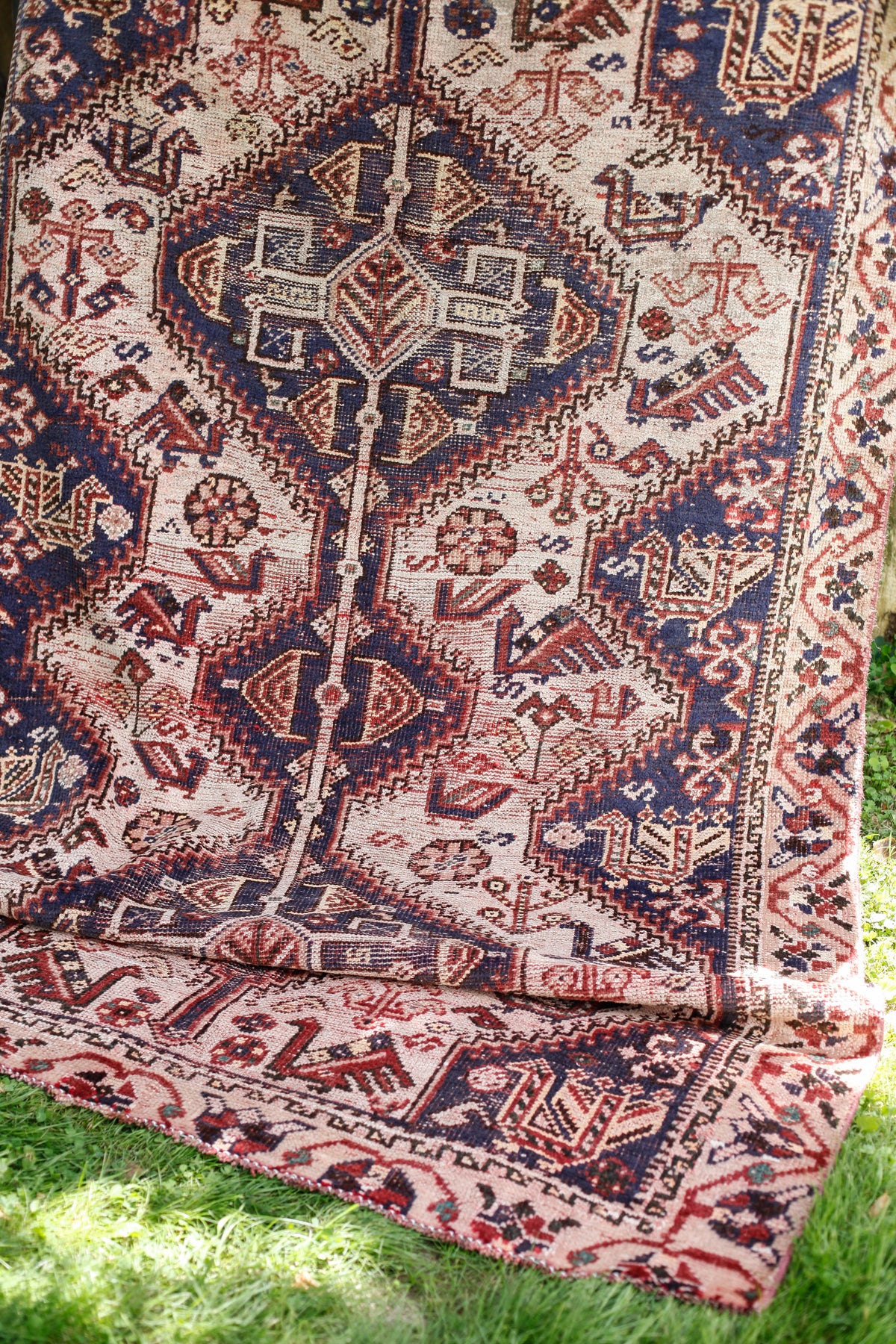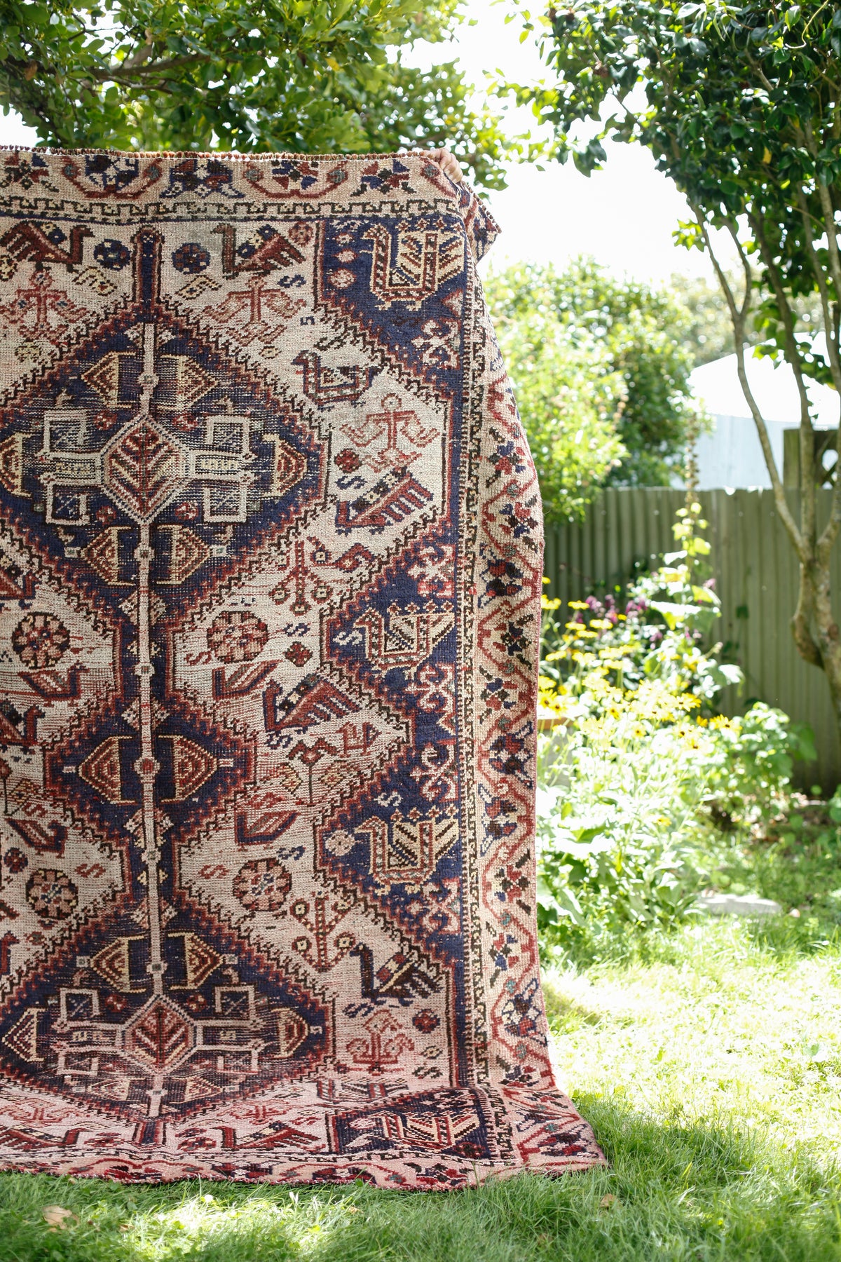 A beautiful piece for any home, this stunner is 50+ years old and hand knotted from wool in Iran. Really nice design with interesting colours. Still so much life left in this rug.