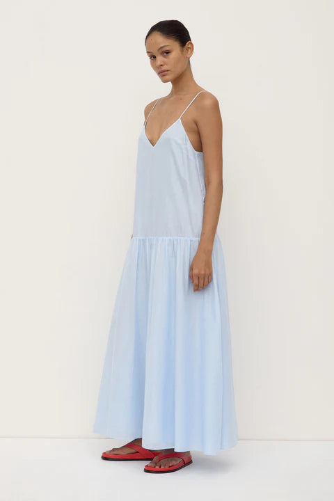 Cut in a maxi length silhouette, the Masie Dress is crafted from a lightweight cotton and is designed for a breezy, relaxed fit. Features a v-neckline, dropped waist and gathered skirt for easy movement.