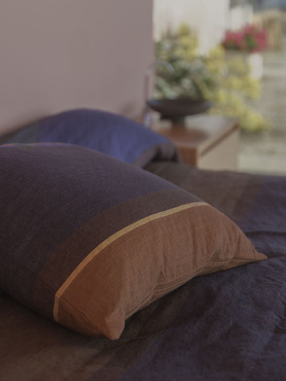 The Obi Euro cushion cover brings vivid colour to the home. Wide woven bands in contrasting tones combine to create a bold, oversized stripe.