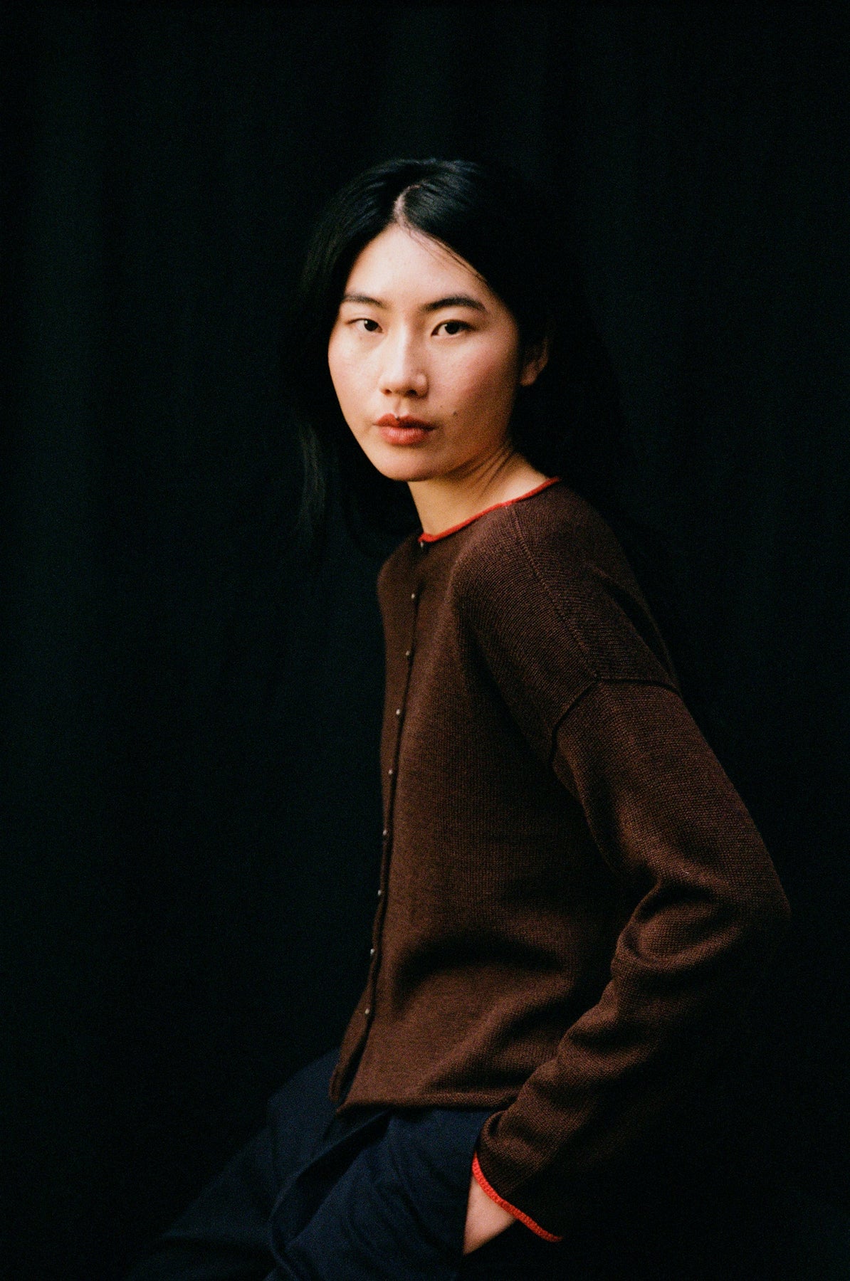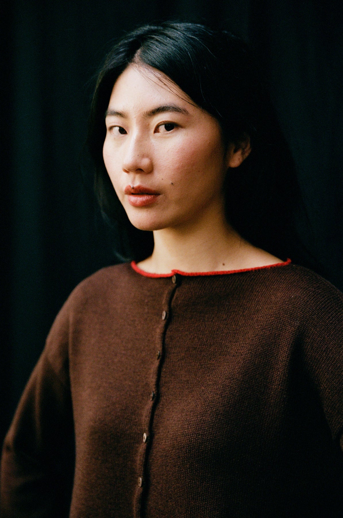Trimmed Doll's Reversible Cardigan | Chestnut / Cherry Trim