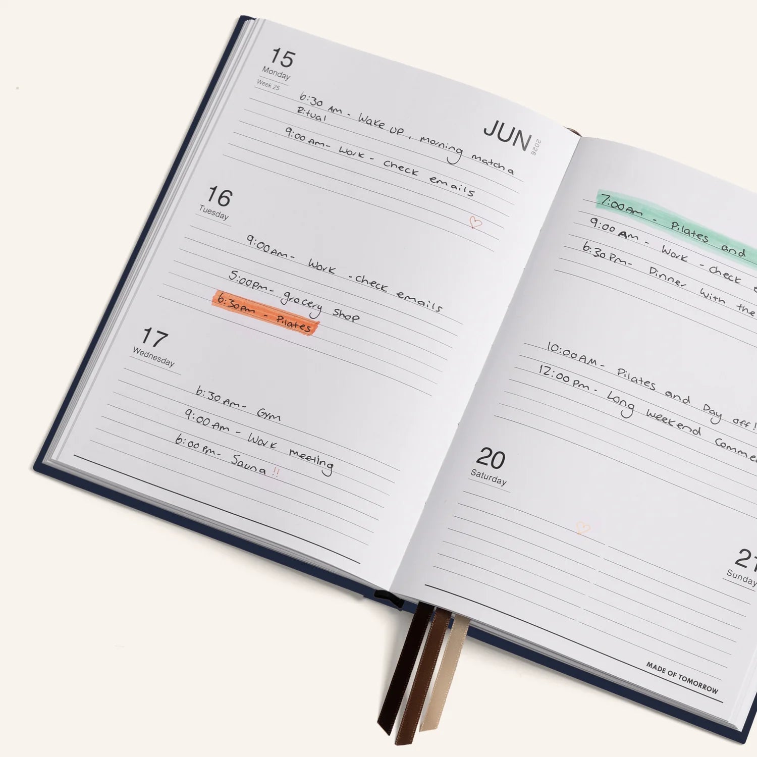 Ample Writing Space: Full spread per weekday layout