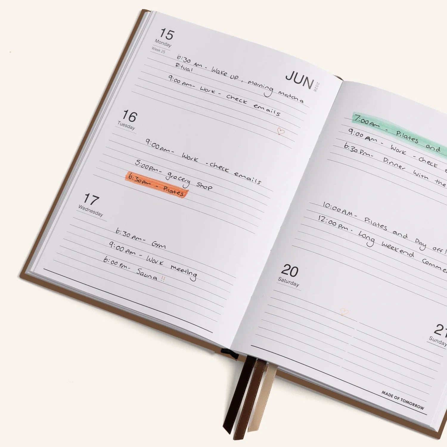 Ample Writing Space: Full spread per weekday layout