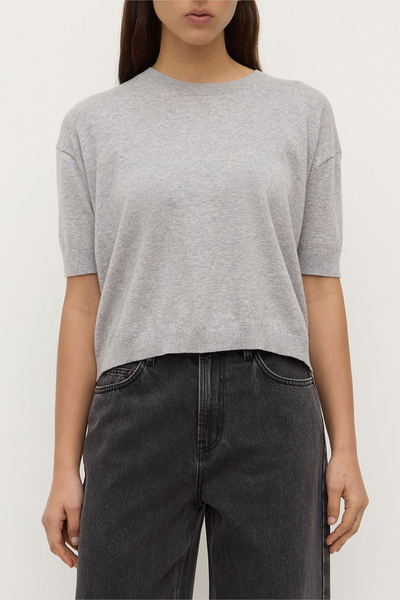 Vanya Cotton Cashmere Knit Tee | Grey Marle
