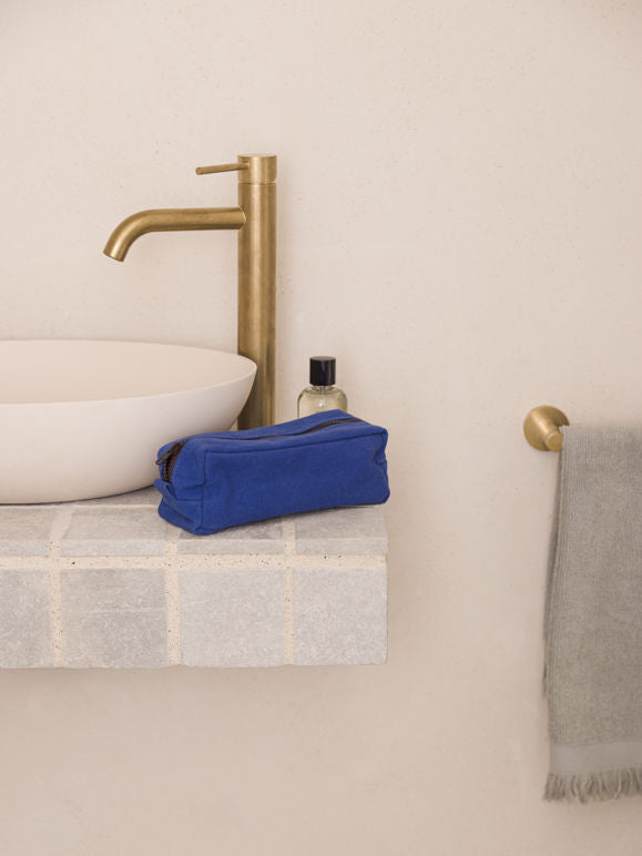 Keep your bathroom essentials safely stowed away with the Marlo wash bag. The bag makes a bold colour statement in bright Aegean, playfully contrasted by an earthy rye zip.