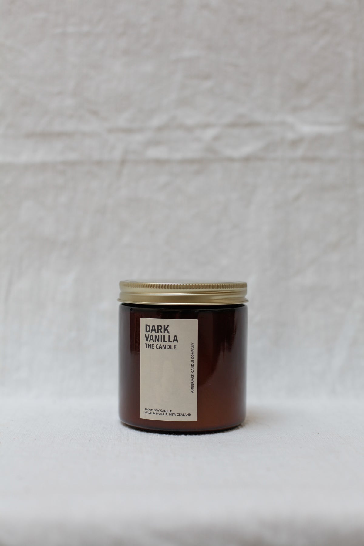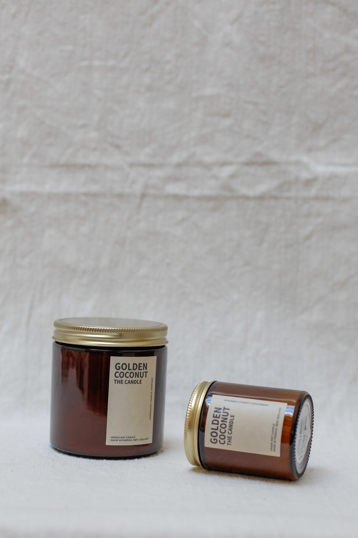 150gm or large 400gm candle in an apothecary style amber glass jar with gold lid.